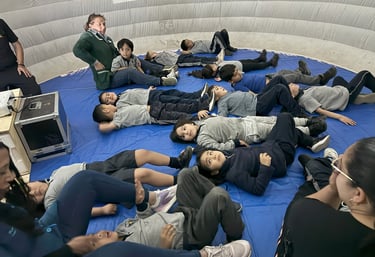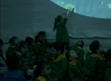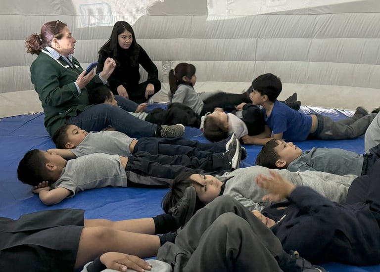 La actividad transforma las salas de jardín infantil en un planetario interactivo mediante la instalación de un mini-domo portátil.